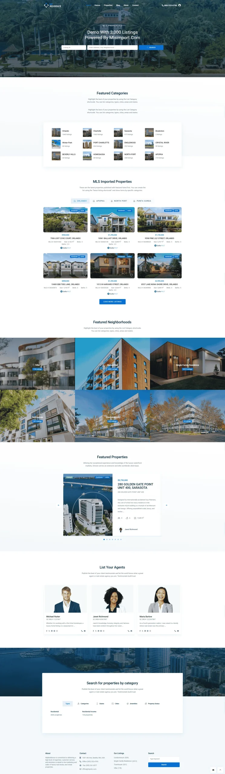 Demo with 3k listings sync by MLSImport WpResidence
